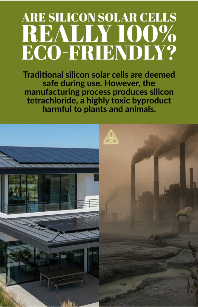 As evident, the above mainly pertains to thin-film solar technologies. Traditional silicon solar cells are deemed safe during use. However, the manufacturing process produces silicon tetrachloride, a highly toxic byproduct harmful to plants and animals. Manufacturers must take steps to reduce the release of silicon tetrachloride into the surrounding environment.