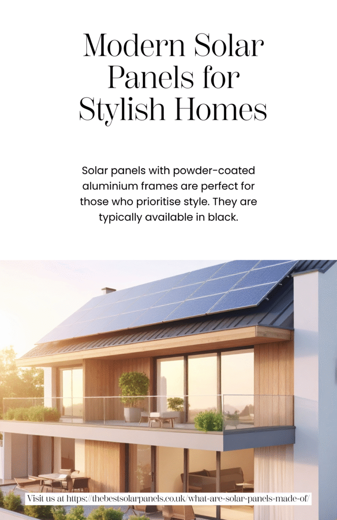 Solar panels with powder-coated aluminium frames are perfect for those who prioritise style. Typically available in black, these frames blend well with dark shingles and can be customised in various colours to match a building’s elements. The powder coating technique allows for glossy, matte, or satin finishes.